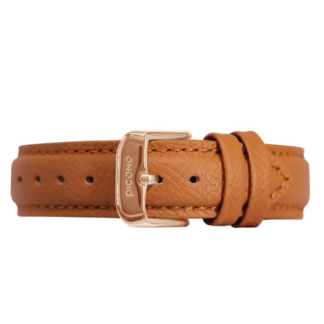真皮錶帶 - 棕色荔枝紋真皮錶帶-玫瑰金釦