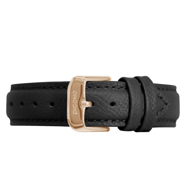真皮錶帶 - 黑色荔枝紋真皮錶帶-玫瑰金釦
