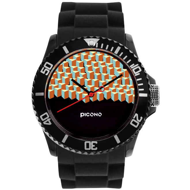 將早期FC紅白機遊戲畫面帶入錶盤,運用不同色塊與立體柱的排列,製造出遊戲的復古畫面,也像是打造出屬於自己的復古遊樂園。 戴上它,讓我們一起再來一場紅白機的遊戲吧!