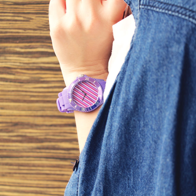 - 橡膠防塵紫色錶帶