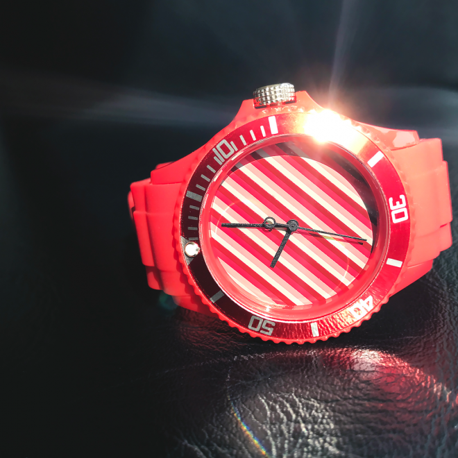 - 橡膠防塵紅色錶帶