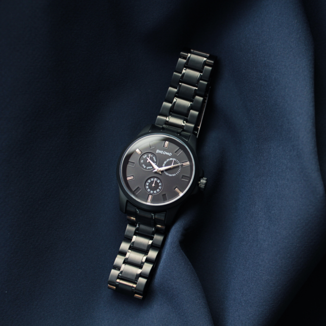 單色系的簡單雙層三眼錶面設計,運用前後重疊方式,為錶款帶入層次感,外觀則是以質感滿分的不鏽鋼材質為主。簡約而時尚的錶款,是每個人都需擁有一支。
