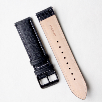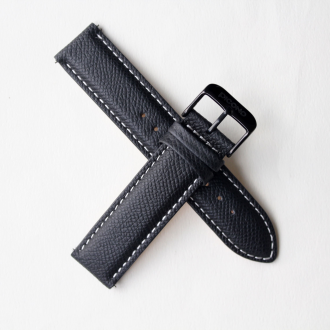 真皮錶帶 - 黑色荔枝紋真皮錶帶-銀扣