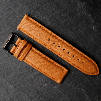 真皮錶帶 - 棕色荔枝紋真皮錶帶-銀釦