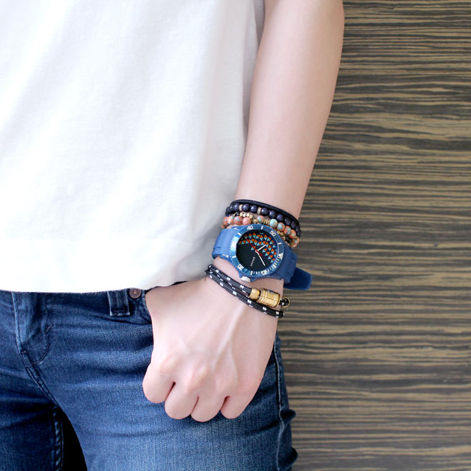當錶盤只剩下錶針與簡單的色彩,該怎麼辦呢? 藉由線與面的排列、旋轉與交錯,創造出幾何圖形和色彩的律動感,仿佛賦予簡單錶盤擁有生命力。戴上它,就像是來到歡樂的馬戲團,永不冷場現在就來擁有自己專屬的普普馬戲團樂園吧!
