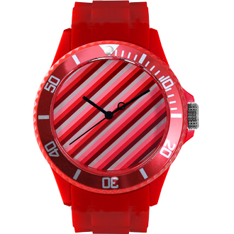 錶盤視覺以斜線為主,運用與錶殼相近色系帶出層次感,而錶針則是使用簡單的藍白色,讓錶針在繽紛的錶盤旋轉時,看起來像是拿著魔法筆的色彩家,不停地創造出令人驚喜的彩色世界。
