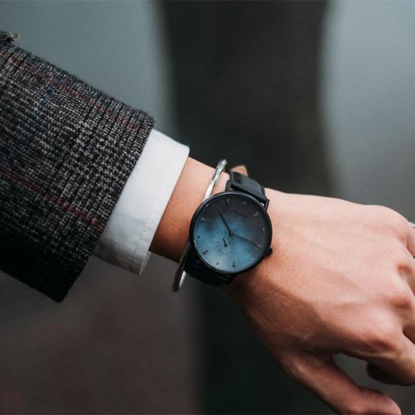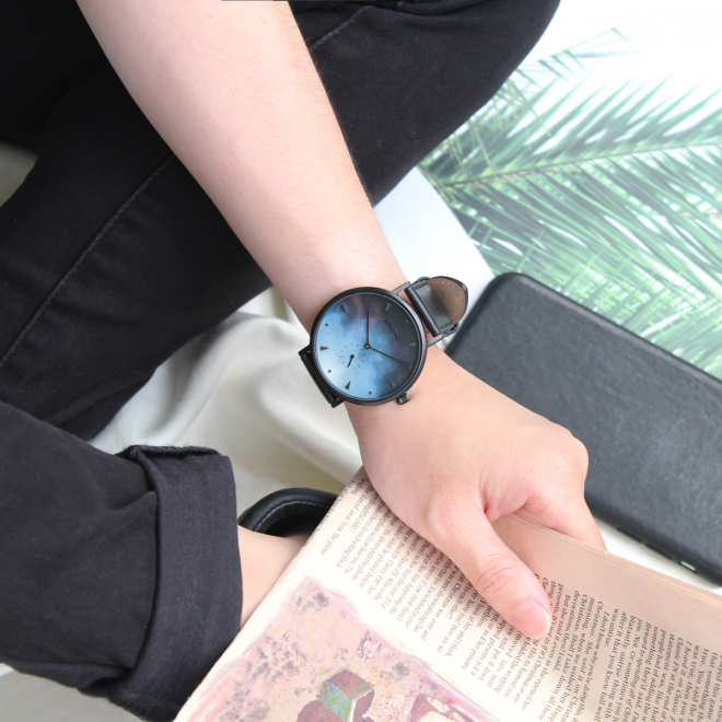 A Week - 渲染黑色真皮錶帶手錶 /黑灰藍