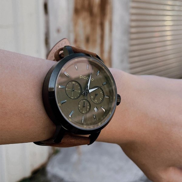 45mm大錶面真三眼D-Time系列有著霸氣的外表與扎實的重量,全錶殼均已不鏽鋼材質製造,錶帶選用真皮錶帶和進口日本機芯,男性配戴襯托自我獨特魅力,女性配戴展現帥氣個性的一面