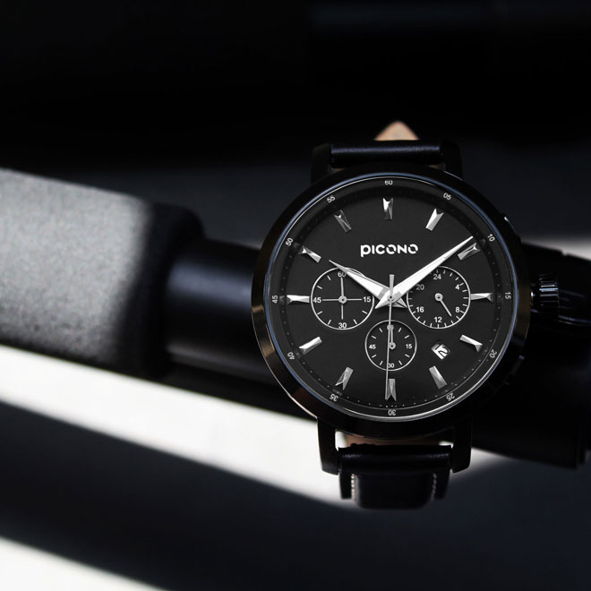 45mm大錶面真三眼D-Time系列有著霸氣的外表與扎實的重量,全錶殼均已不鏽鋼材質製造,錶帶選用真皮錶帶和進口日本機芯,男性配戴襯托自我獨特魅力,女性配戴展現帥氣個性的一面