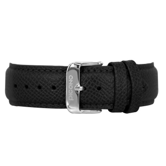 真皮錶帶 - 黑色荔枝紋真皮錶帶-銀扣