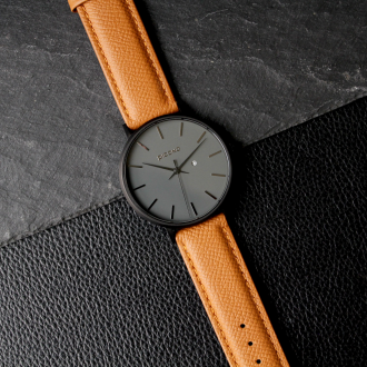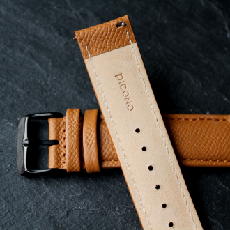 真皮錶帶 - 棕色荔枝紋真皮錶帶-銀釦