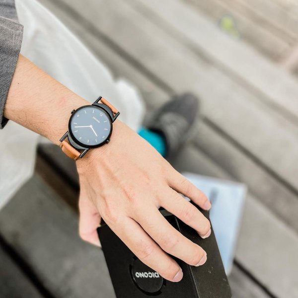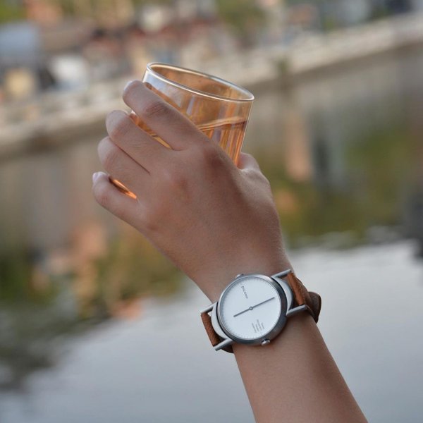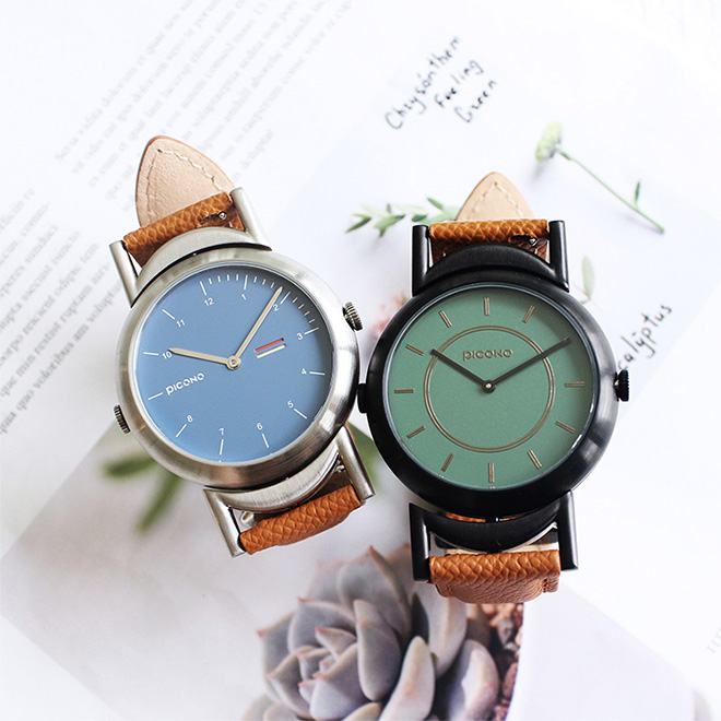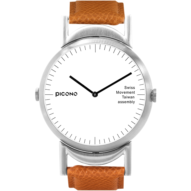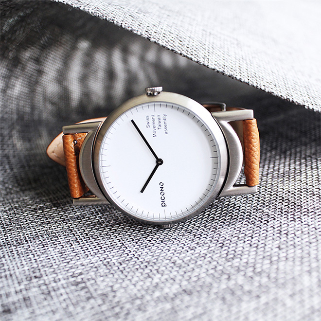 錶殼使用霧面質感金屬,錶面風格乾淨簡約,搭配上法國進口質感真皮錶帶,